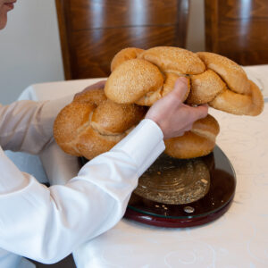 בוצע על שתי כיכרות, שאוחז שתיהן בידו ובוצע התחתונה.