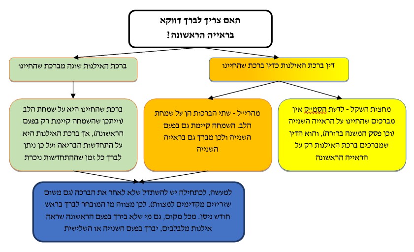 האם צריך לברך ברכת האילנות דווקא בפעם הראשונה שרואים אילנות פורחים? כדי לענות על השאלה אפשר להקביל את ברכת האילנות לברכת שהחיינו, ששתיהן נתקנו על שמחת הלב, ולנסות ללמוד את דין ברכת האילנות מדין ברכת שהחיינו.