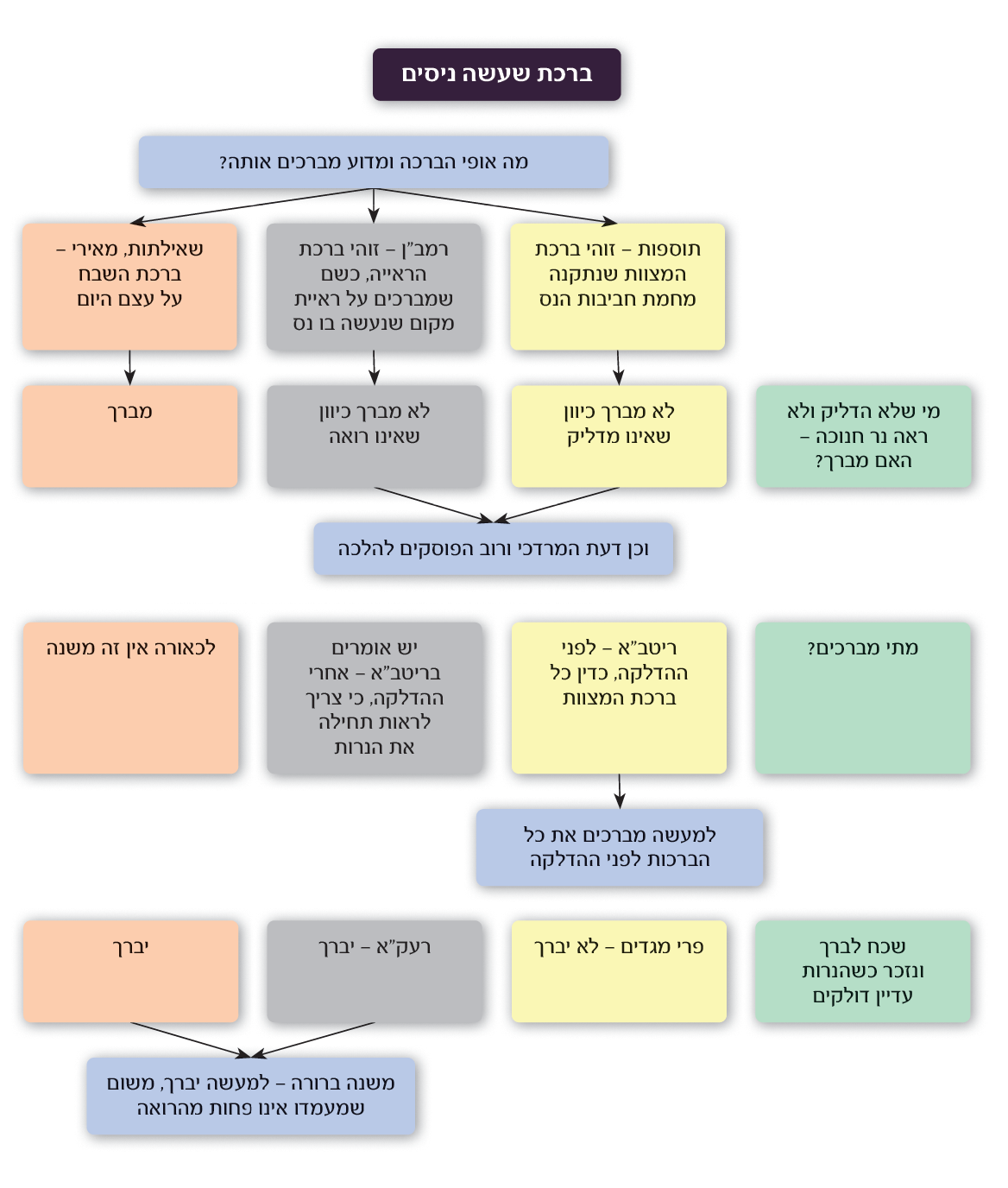 ג. לדעת השאילתות (וישלח, שאילתא כ”ו) ברכת שעשה ניסים נתקנה על עצם היום, אלא שחכמים הסמיכו אותה להדלקת נרות:
