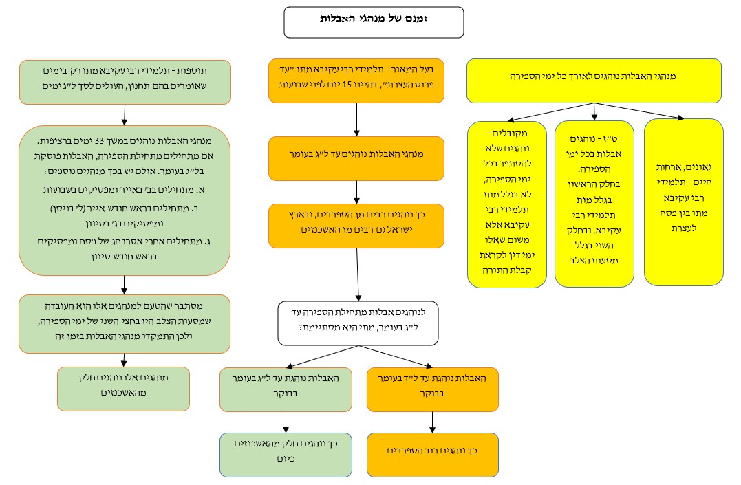מה הזמן שבו נוהגים את מנהגי האבלות? הרקע לדיני האבלות נלמד מהגמרא במסכת יבמות (סב ע”ב) המספרת על מותם של תלמידי רבי עקיבא. ומוסיפה הגמרא: “תנא: כולם מתו מפסח ועד עצרת”. כלומר, זמן מיתתם היה בין פסח ושבועות.