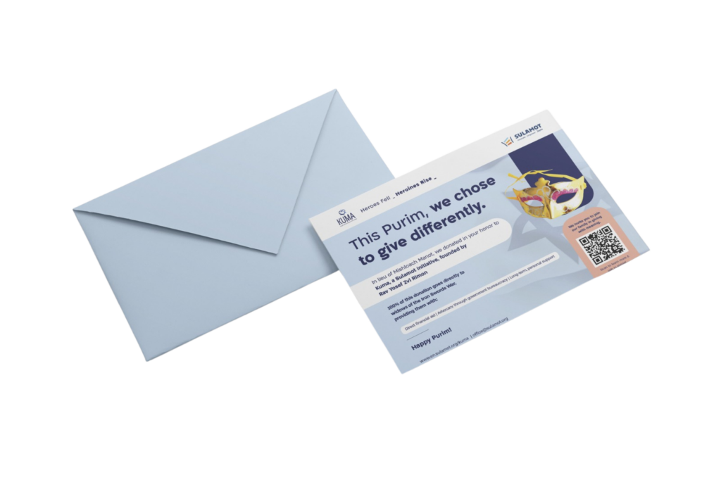This year, many families are choosing to support Kuma, an initiative that stands with the widows of the Iron Swords War, providing practical support, guidance, and stability long after the initial shock has passed.
